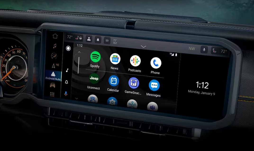 The Wrangler's technology suite includes a 12.3-inch infotainment screen, Apple CarPlay, Android Auto, and real-time traffic updates. Stay connected and informed with easy smartphone pairing and comprehensive media options.