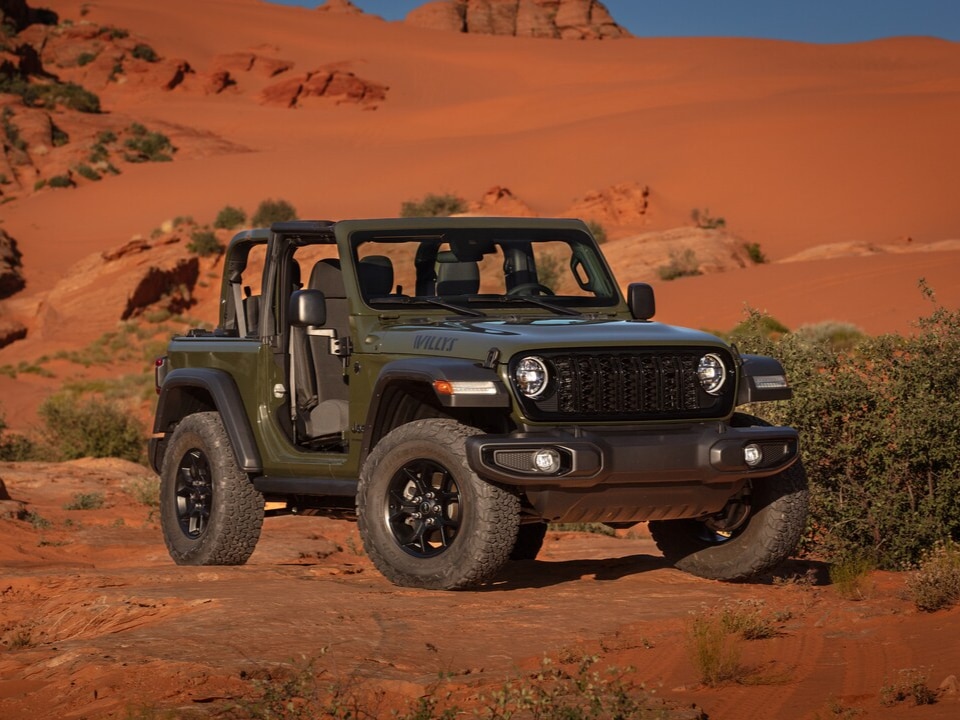 - Willys: Features off-road tires, rock rails, and a limited-slip rear differential.